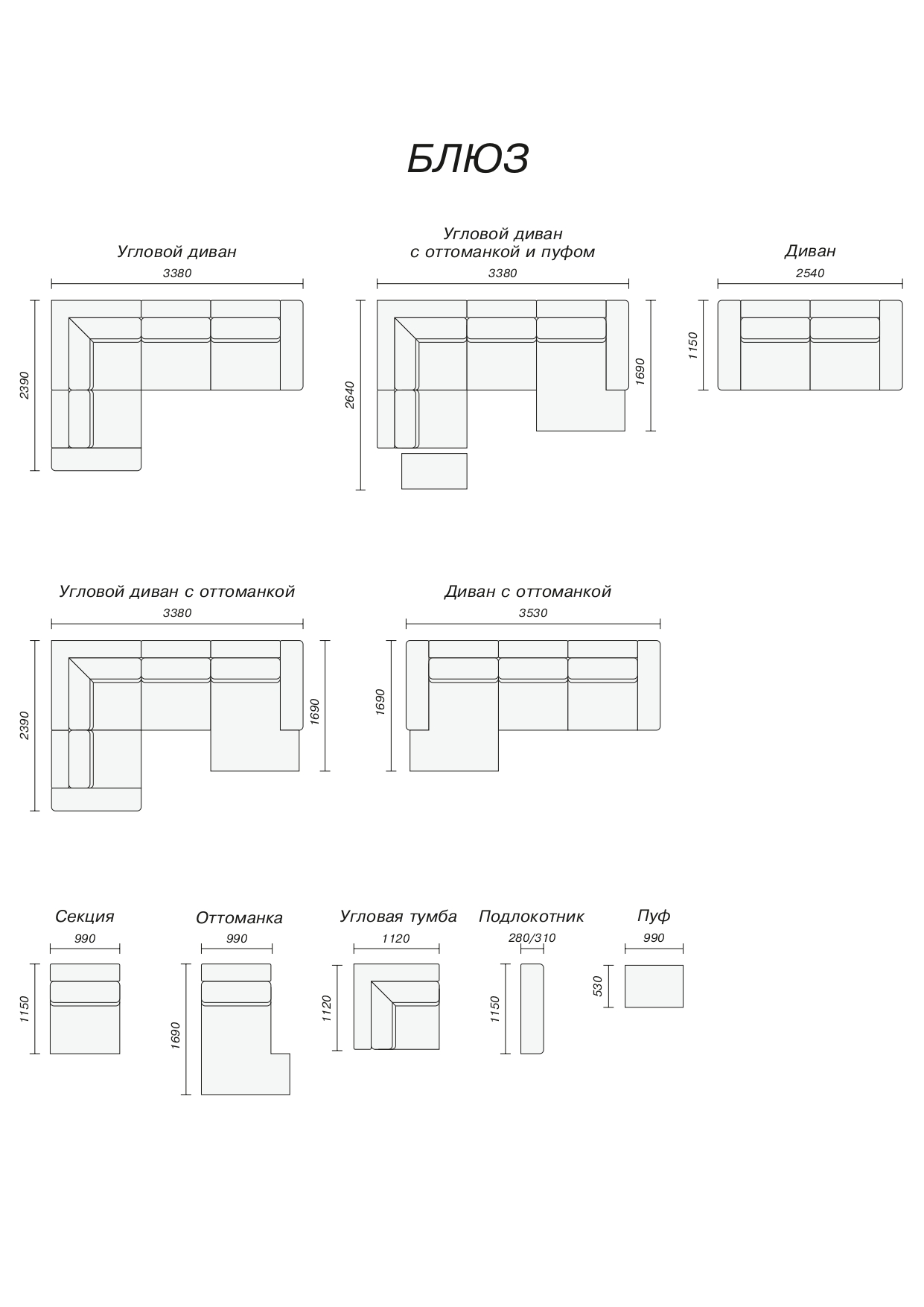 БЛЮЗ – модульная система, позволяющая собрать необходимую конфигурацию и размеры дивана под потребности заказчика и особенности помещения. Благодаря технологиям изготовления мебели на заказ, помимо модулей стандартного размера, также возможно адаптировать модель под индивидуальные потребности. При этом можно не только воспользоваться многообразием модульных комбинаций дивана, но и поменять размеры по ширине и глубине с шагом до 10мм, выбрать наиболее подходящий вариант облицовочного материала, благодаря чему БЛЮЗ идеально впишется в заданное пространство.