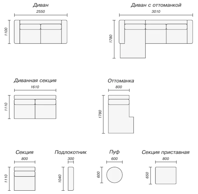 На сайте представлены наиболее востребованные стандартные комплектации, для расчета комплекта мягкой мебели согласно Вашим размерам и геометрии помещении можно самостоятельно воспользоваться размерами стандартных модулей, как конструктором, или оставить заявку на расчет на сайте.
