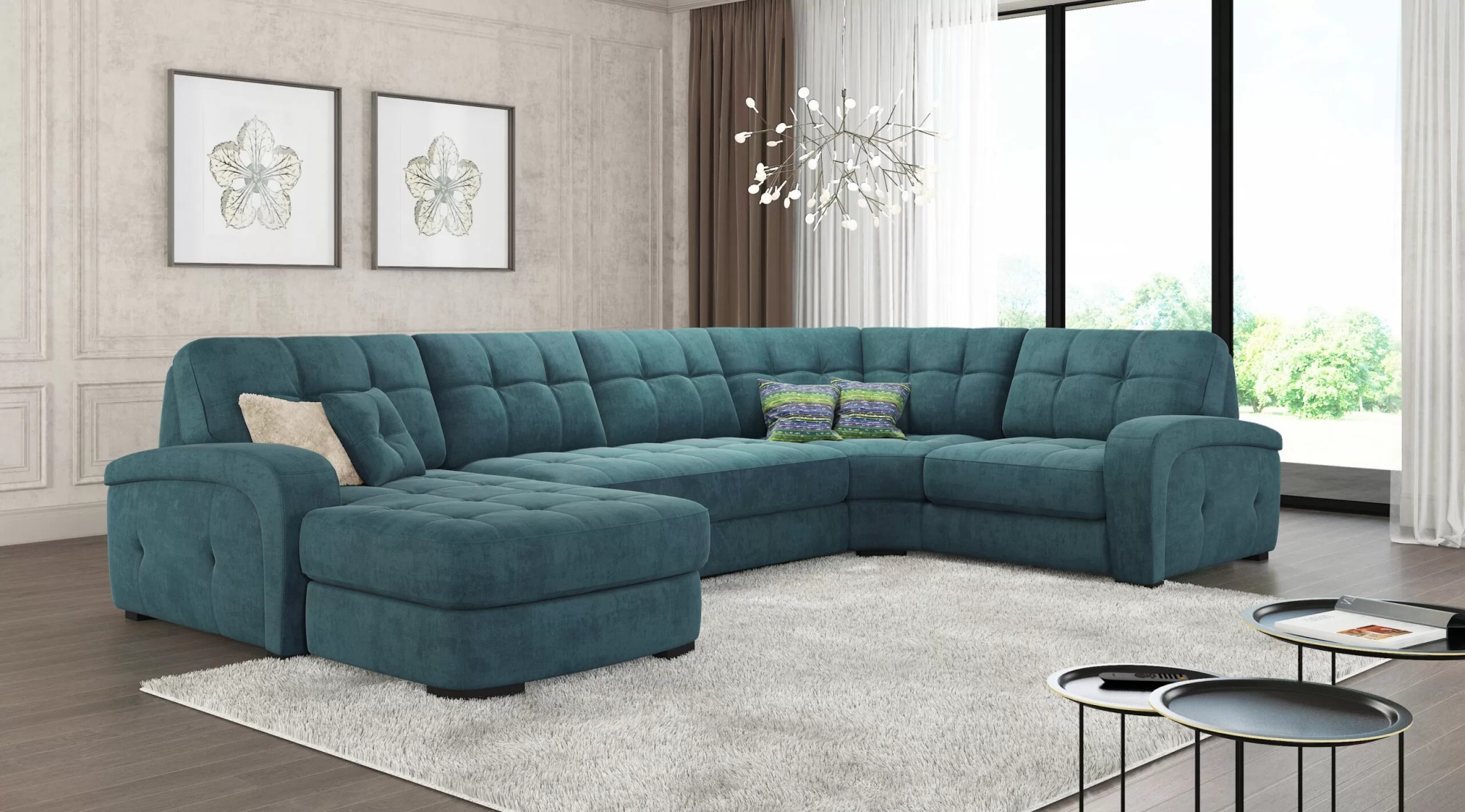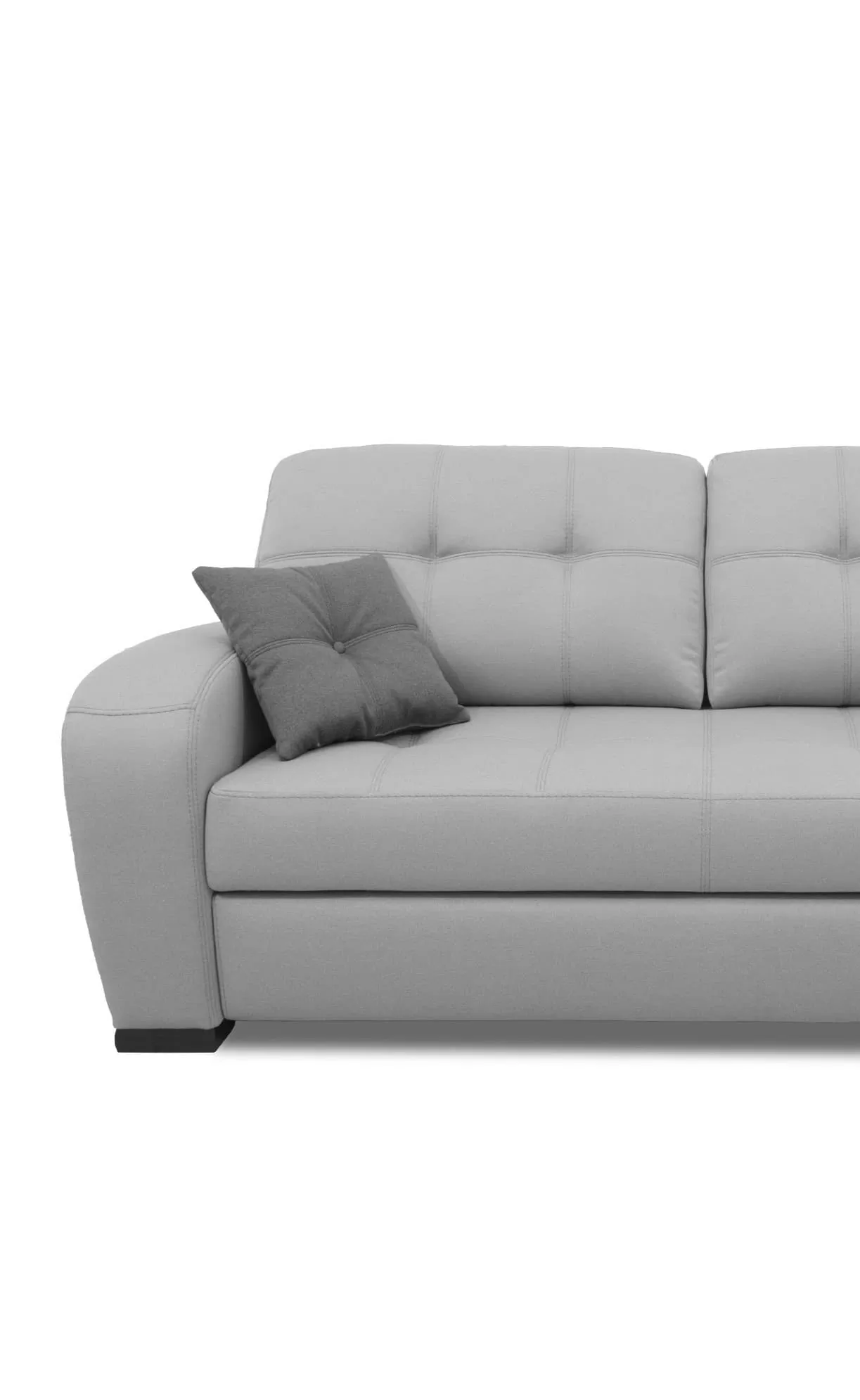 Механизм трансформации дивана в спальное место имеет промежуточное положение трансформации, когда скрытое в объемной спинке изголовье выдвигается вперед до уровня оттоманки, что позволяет расположиться на диване максимально комфортно.