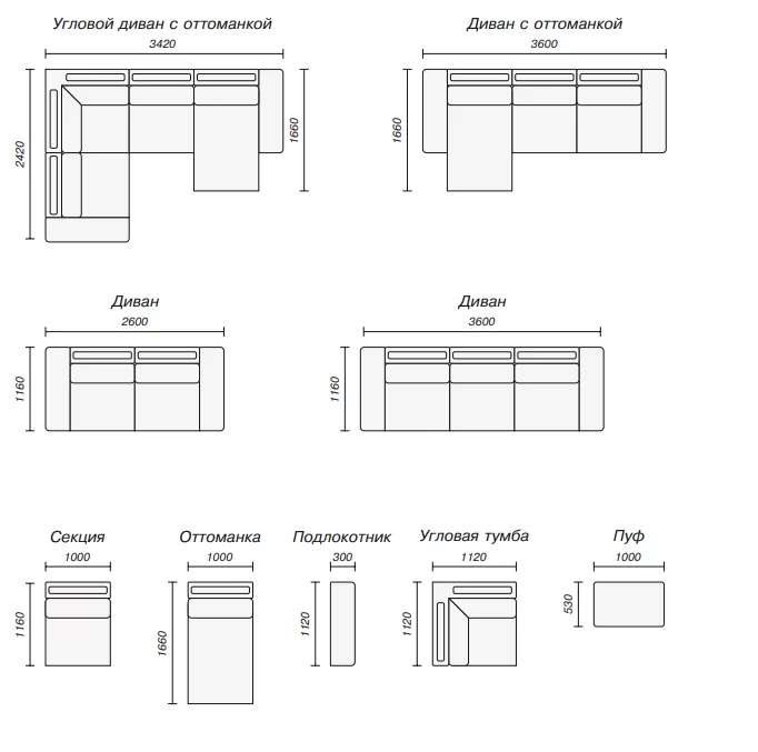 На сайте представлены наиболее востребованные стандартные комплектации, для расчета комплекта мягкой мебели согласно Вашим размерам и геометрии помещении можно самостоятельно воспользоваться размерами стандартных модулей, как конструктором, или оставить заявку на расчет на сайте.