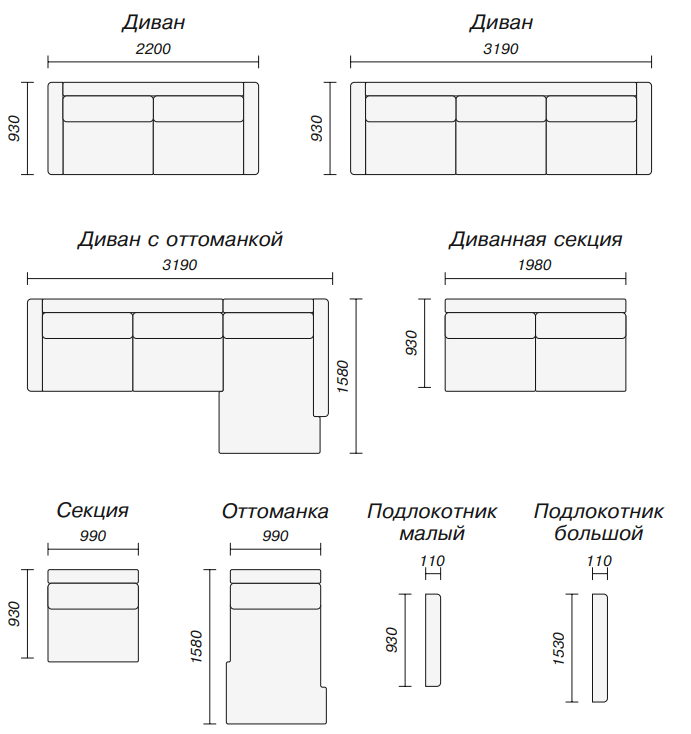 На сайте представлены наиболее востребованные стандартные комплектации, для расчета комплекта мягкой мебели согласно Вашим размерам и геометрии помещении можно самостоятельно воспользоваться размерами стандартных модулей, как конструктором, или оставить заявку на расчет.