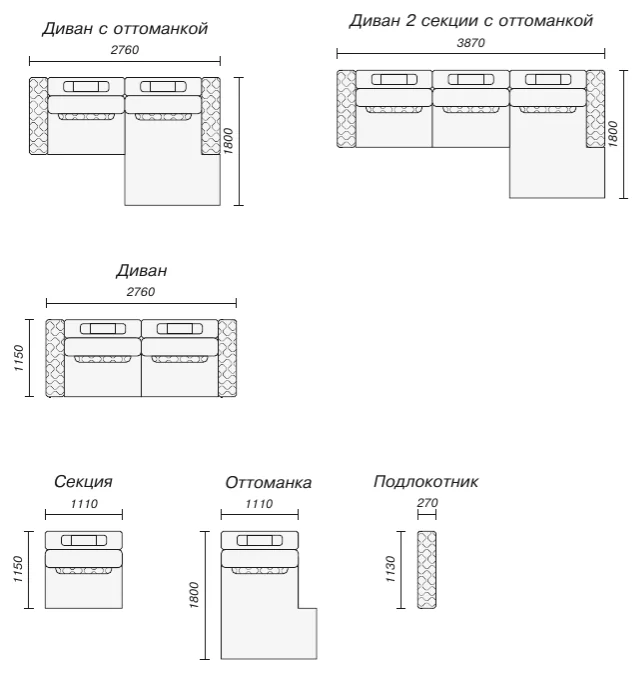 На сайте представлены наиболее востребованные стандартные комплектации, для расчета комплекта мягкой мебели согласно Вашим размерам и геометрии помещении можно самостоятельно воспользоваться размерами стандартных модулей, как конструктором, или оставить заявку на расчет.