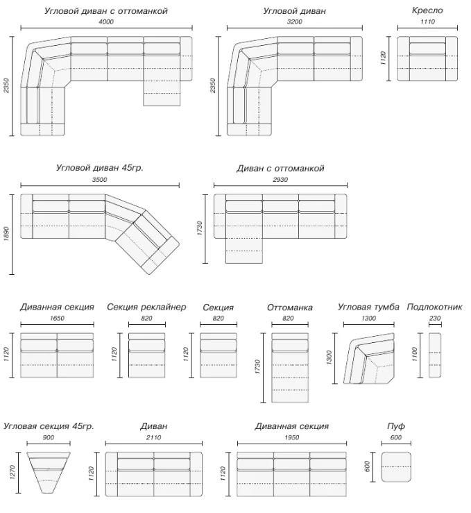 ВИРДЖИНИЯ – модульная система, позволяющая собрать необходимую конфигурацию и размеры дивана под потребности заказчика и особенности помещения, в том числе для эркерных зон, благодаря наличию модуля развернутого угла. Помимо модулей стандартного размера возможно индивидуальное исполнение с корректировкой ширины и глубины модулей с шагом до 10мм, благодаря чему ВИРДЖИНИЯ идеально впишется в заданное пространство. На сайте представлены наиболее востребованные стандартные комплектации, для расчета комплекта мягкой мебели согласно Вашим размерам и геометрии помещении можно самостоятельно воспользоваться размерами стандартных модулей, как конструктором, или оставить заявку на расчет на сайте.