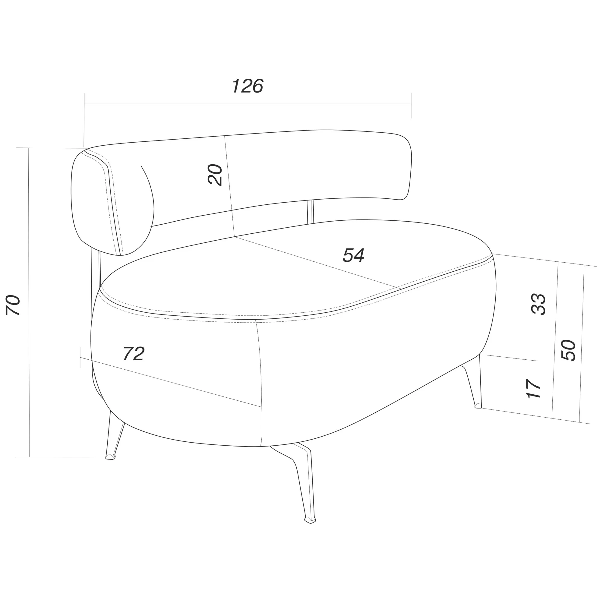 Интерьерный мини-диван НИКОЛЬ имеет плавные округлые линии и невысокую линию спинки.