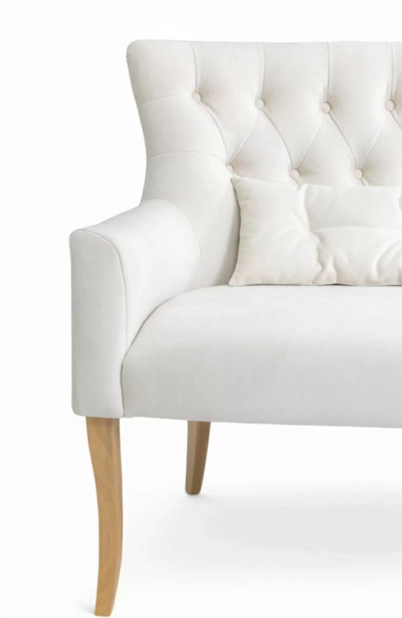 Мини-диван НИКА обладает классическим силуэтом с традиционной формой спинки и невысокими подлокотниками.