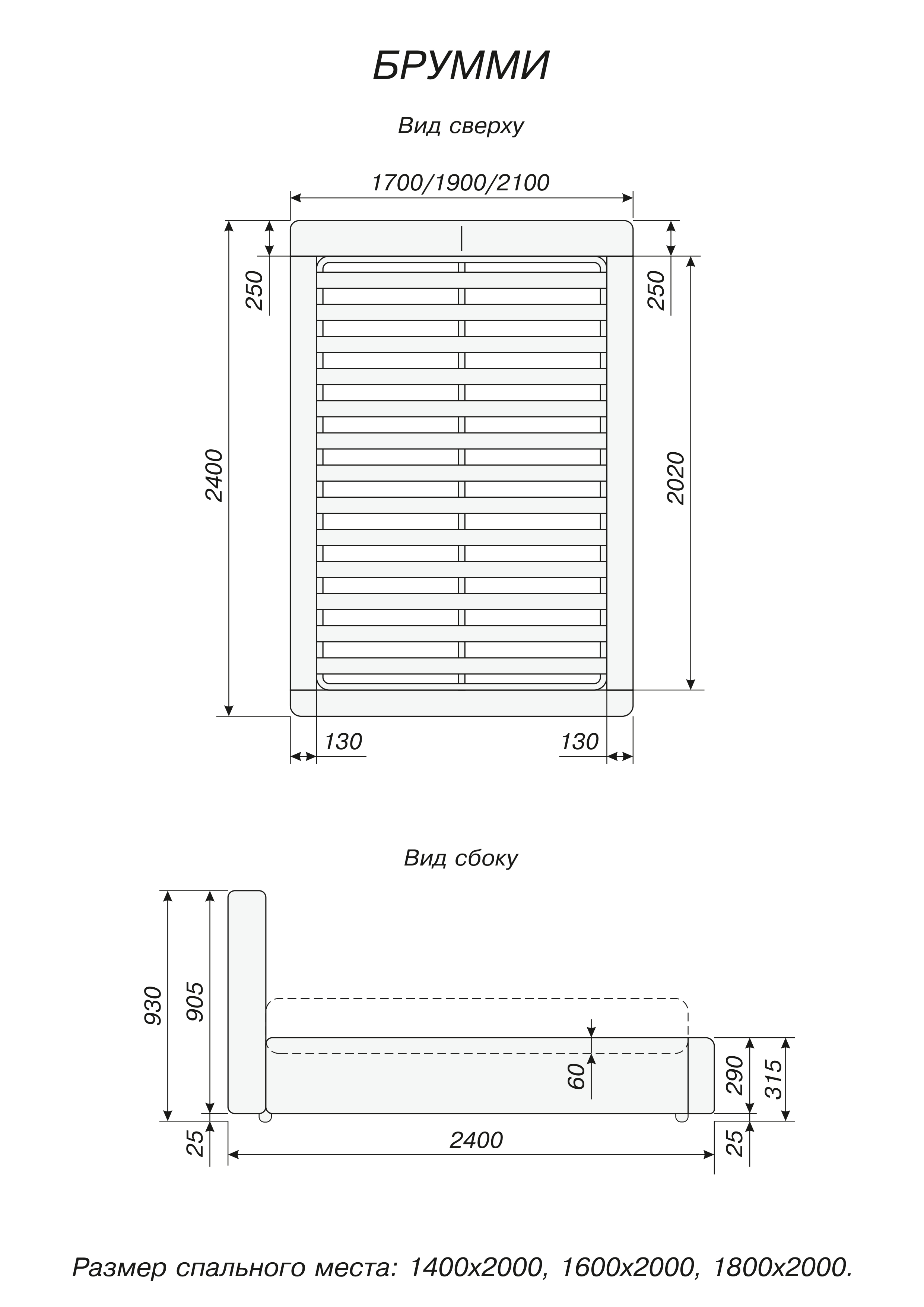 BRUMMIE - универсальная модель, которая подходит для любого интерьера. Широкое мягкое изголовье выполнено с элегантной драпировкой со всех сторон. Съёмная царга обеспечивает лёгкий уход