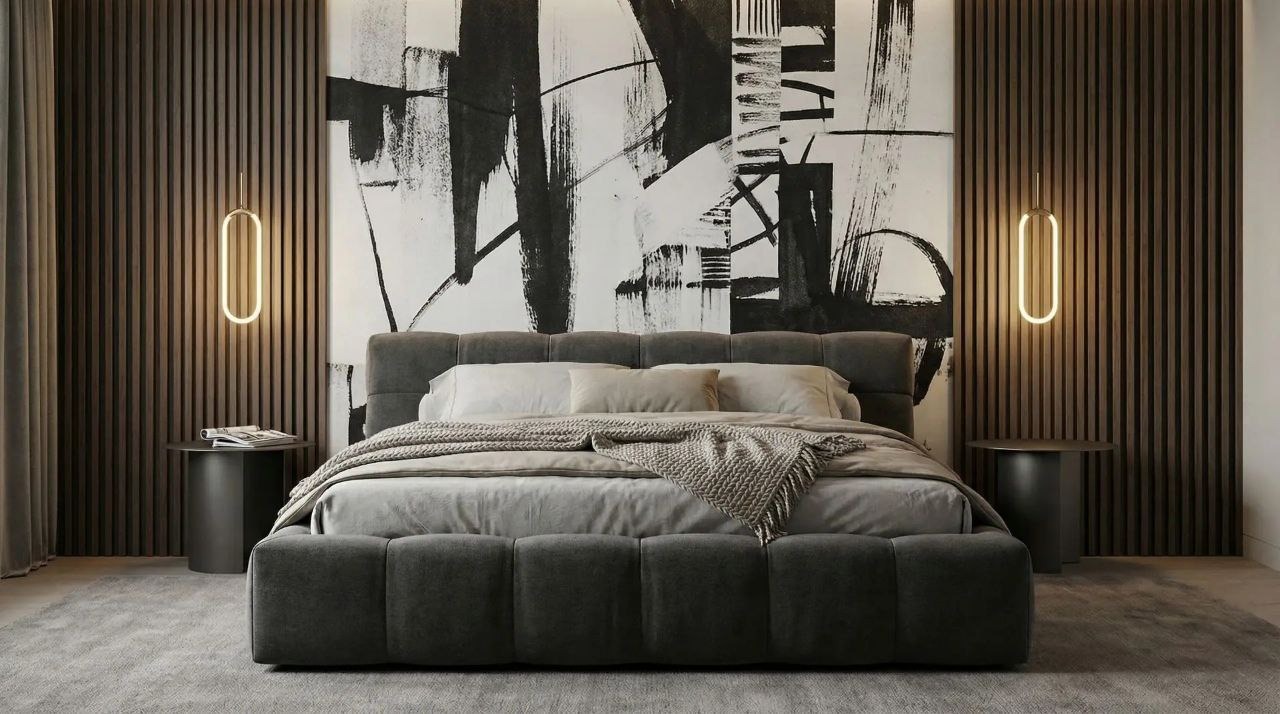 Иногда достаточно одного выразительного элемента, чтобы современная кровать в интерьере превратилась в главный акцент спальни.