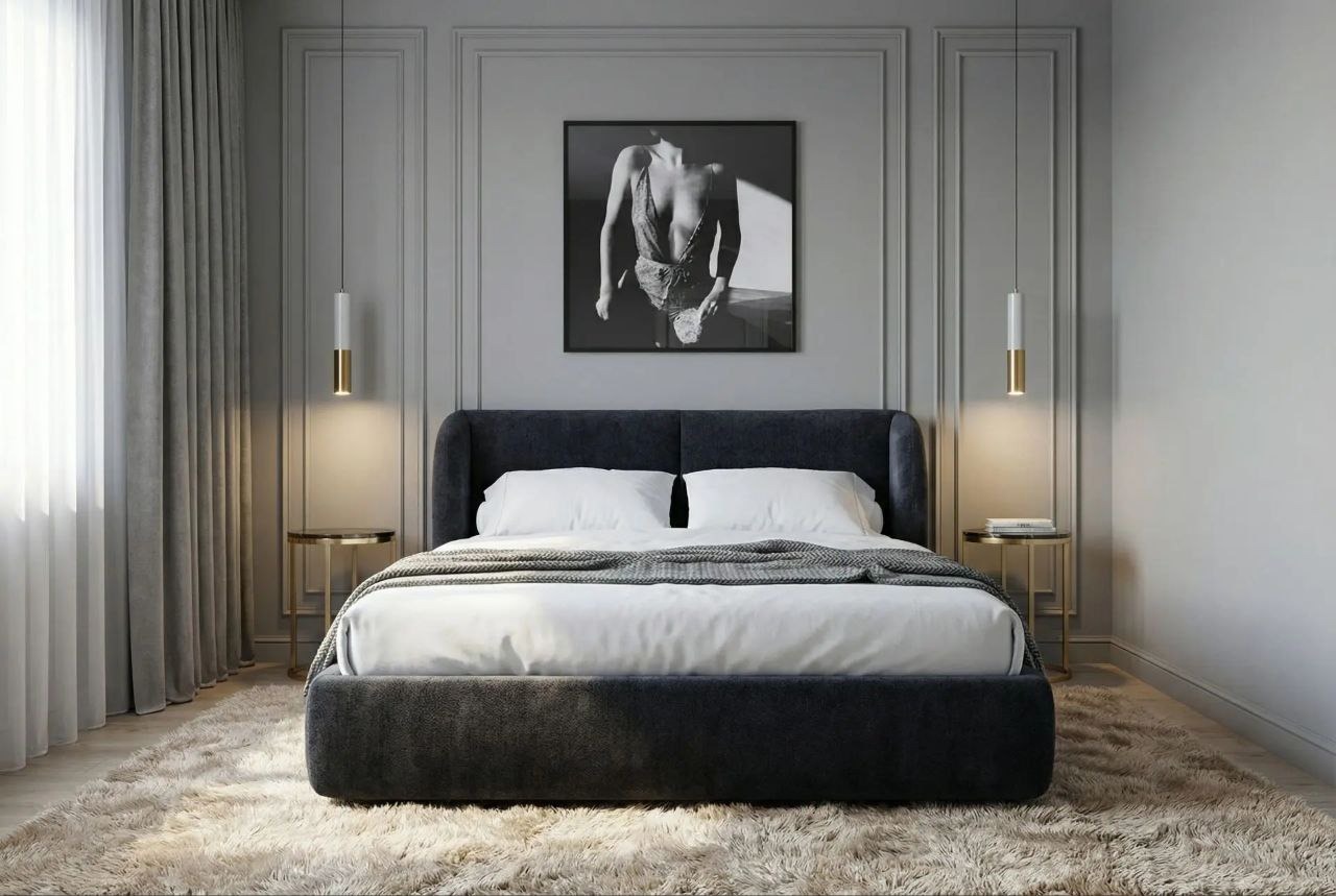 Потому что фактуры должны «разговаривать» между собой. Если стены выполнены в декоративной штукатурке или бетоне, мягкая кровать добавляет интерьеру необходимое ощущение тепла. Если же пространство уже насыщено текстилем и сложными фактурами, кровать может быть более лаконичной.